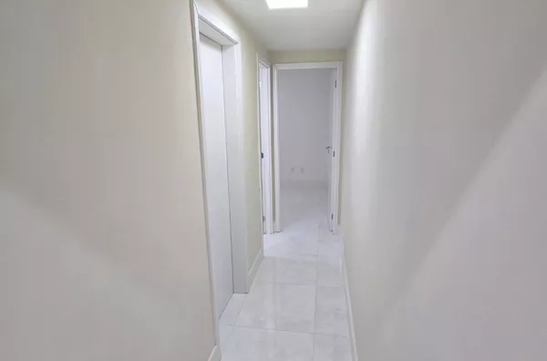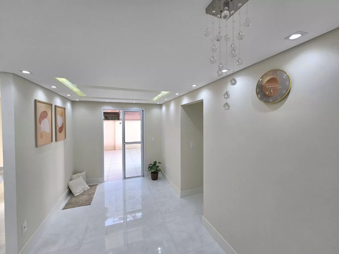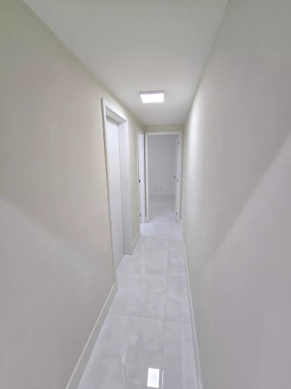 Acabamento premium: porcelanato polido, sanca com iluminação, rodapés altos