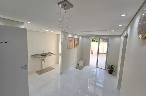 Apartamento novo, nunca habitado, com 90m² de área privativa + 30m² de garden privativo. São 2 dormitórios, banheiro completo e decorado, sala de estar e jantar, cozinha integrada à lavanderia e 1 vaga de garagem coberta e livre.